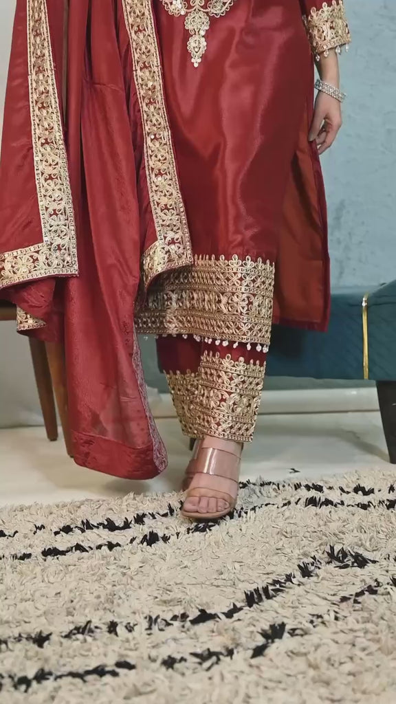 💃*Pant fabric* :Pure Heavy Chinnon Silk With Heavy Embroidery Coding Sequence Work *(FullyStitched)*