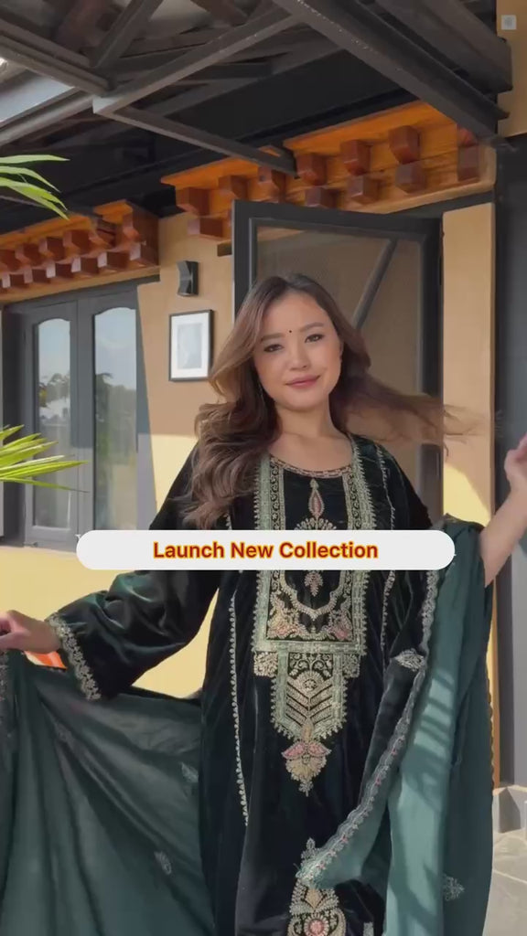 💃*Top Fabric* :Pure Heavy Viscous Velvet With *Heavy Embroidery Coding Sequence Work* With Full Embroidery Sleeve *(ND-5025)*